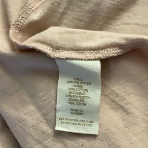 Shell 100% polyester lining 100% cotton. Inner portion of dress is like a T-shirt it will hug close to the body while the rest of the garment will flow freely. Lining portion of the dress chest measurement 32 inches. Length at back is 29 inches from the nape of the neck to the Hemline.