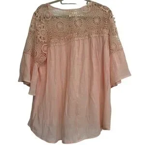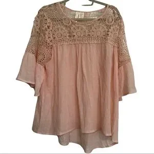 Forgotten Grace Blouse Womens Pink Top with Lace Detail Size XL
