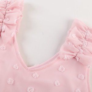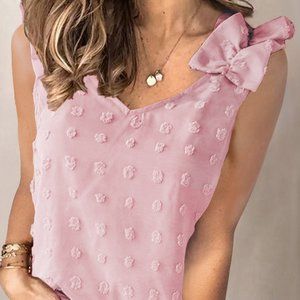 Pink Swiss Dot Tank Top with Ruffle Shoulders