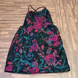 URBAN OUTFITTERS Black Red Floral Electric Heart Strappy Mini Dress!