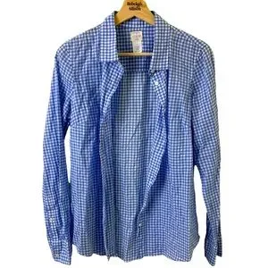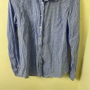 This is a very nice J. Crew light blue and white plaid Buffalo check button down in a men’s size small. It’s such a nice business casual or business wear piece. Perfect for going into the office, and in great condition with no flaws. Gently used.