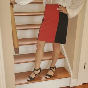 Michael Kors Blk Red Colorblock Panel Pencil Skirt