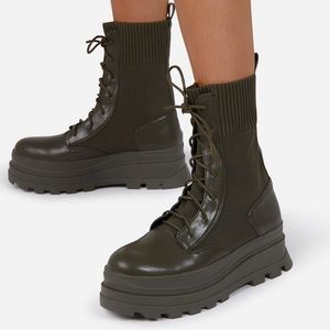 KHAKI KNITTED CHUNKY BIKER BOOT