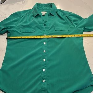 Chico's LS Green Button Up V-neck Blouse