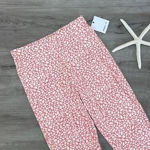 A cute and casual knit pant that has a cropped, flare leg design and allover floral print.