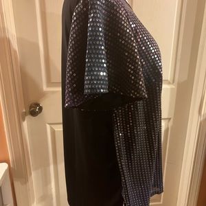BNWT Lane Bryant sequined too with short sleeves. Holographic color in the sequined front black/jade/purple, black Jersey back. Size 14/16. Comes from smoke fre home.