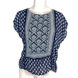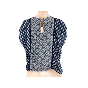 Womens Lucky Brand Sz L Dark Navy Blue & White Sleeveless Multipattern Top