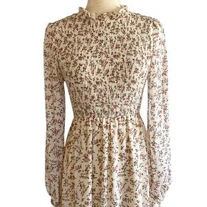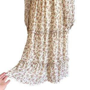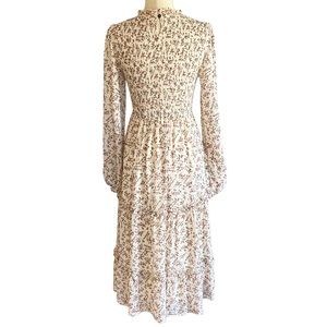 ⭐️ SOLD ⭐️ PETAL & PUP Edwina Shirred Long Sleeve Midi Dress Floral Cream Size 4