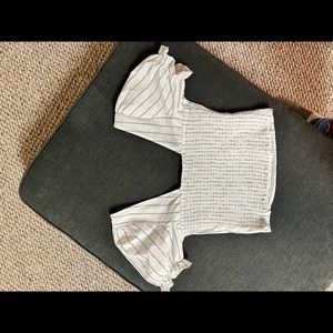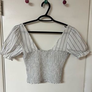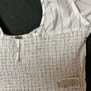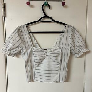 Free People puff sleeve peasant style top. Similar to a corset-top feel with elastic on the back. Super cute and easy to style for a day or night !