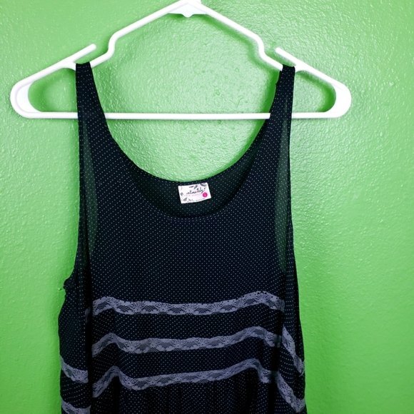 Free People Intimately Black Gray Poka Dot Sleeveless Tappered Shirt Sz Small