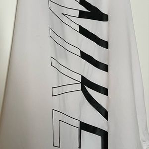 Hit the gym (or the grocery store - no judgement!) in this strappy Nike tank. Black straps include the “Just Do It” slogan and accent the crisp white dri-fit material and bold logo.