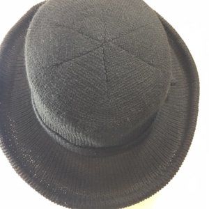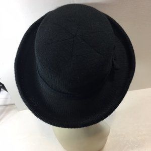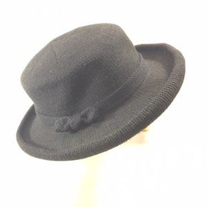 Isotoner Black Knit Sweater Casual Winter Hat Bow on Trim Lined 21"