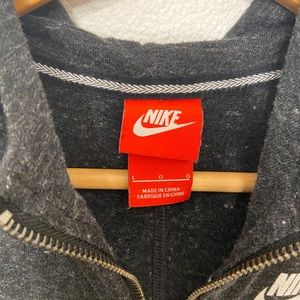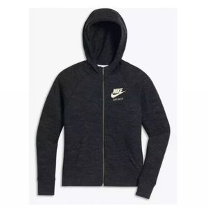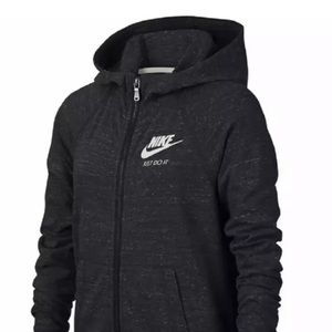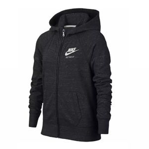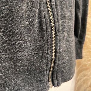 Gently used girls vintage gym zip hoodie. Size is Large. Color is a charcoal heathered grey/black.