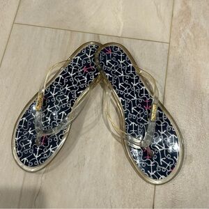 J. Crew cream flats with red and blue accents & elastic size 5.5. Unique color combination. Few signs of wear! Very comfortable! Excellent condition