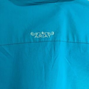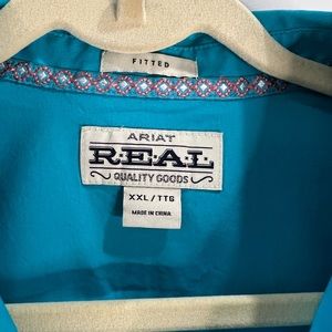 Ariat teal fitted XXL long sleeve triple button cuff with a 4th button. Left breast pocket with Ariat logo and back logo. Like new, maybe wore twice.