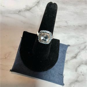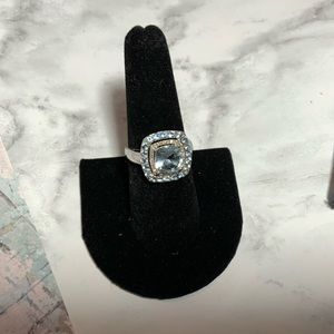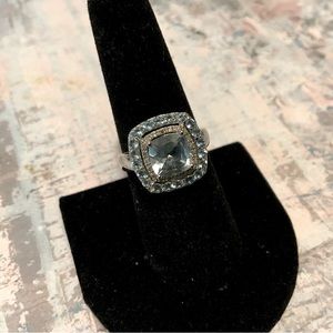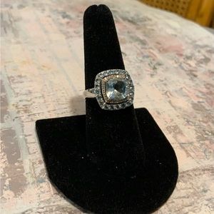 Stunning 10K Cushion-Cut Swiss Blue Topaz & Diamond Ring - Double Halo - Sz 6.75.