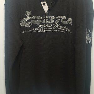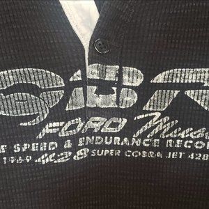 VINTAGE MENS LUCKY BRAND BLACK COBRA FORD MOTOR MUSTANG HENLEY LONG SLEEVE L