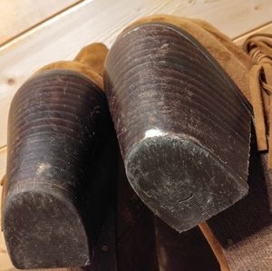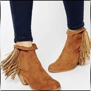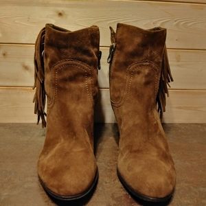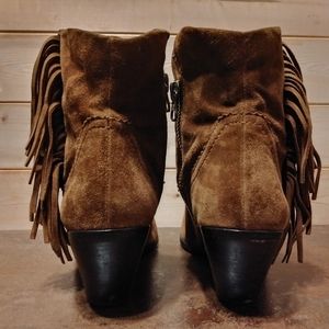 Sam Edelman Sz 10M Louie Cognac Suede Leather Fringe Bootie Brown Cowboy Heel