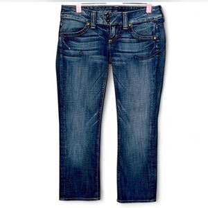 In great preowned condition with minor signs of wear- including frayed hemlines, some loose strings- please refer to photos