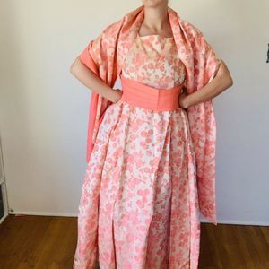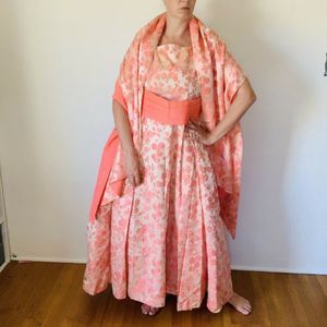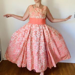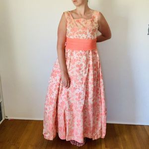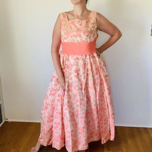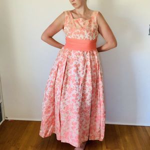 Vintage 1960s Peach Brocade Gown