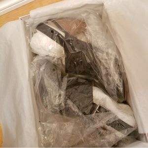 SJP Mason mules with adjustable back strap, size IT 40 but fit small. I would say they fit size 9 - 9.5 In excellent shape, only worn indoors a couple of times. Comes with original box & packaging, dust bag and SJP shopping bag.