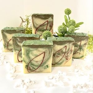 This soap is a favorite among many of all the people that smell it use it and buy it for their enjoyment. The description is a smoky, Earthy, woodsy and captivating smell. I have used the colors that I identify with Tobacco and Bay Leaf as that is the combination of the fragrance. The natural color that the soap cures is a toupee tone and all the colors added are specially safe for cosmetic soaps decorations.