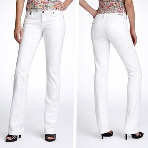 NWOT Nicole Miller cropped denim jacket S in mid blue; a timeless/season less classic! Metal copper button front closure. Two functional flap breast pockets with copper button closure. Angled front seaming accentuates your shape. Two slash side pockets. Two copper buttons with tab to adjust waist fit. Split, copper button cuffed sleeves, to roll or not. Some very subtle distressing on seams. Shoulders 14" flat lay, bust 17", 19.5" length base of collar to waist hem. 68% cotton/30% polyester/2% denim has a good deal of stretch. Machine wash cold. PLEASE NOTE: WASH SEPARATELY as this is a new jacket or dye may transfer.