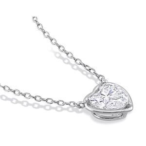 2.00 Carat (ctw) Lab-Created Moissanite Heart Pendant Necklace in Sterling Silver with Chain; This heart-cut moissanite solitaire station necklace is crafted in luminous sterling silver and features a heart-cut prong-set created white moissanite gemstone as its centerpiece in a classic solitaire pendant design, perfect for all occasions. Elegance and sophistication at its finest, this gemstone necklace is sure to make a perfect versatile addition to any jewelry collection. Moissanite is a gemstone with extraordinary durability and brilliance. Moisannite is the perfect replacement for a diamond and comparable to, or even surpassing the clarity, and color of a diamond.; Beautifully crafted in 0.925 sterling silver with a Polished Finish and includes the matching chain; Stone Type: Moissanite; Color: White; 2.00 CTW; Quantity: 1; Heart Cut; Heart Shape; Dimensions: 8 mm; Lab Created; This item ships directly from the USA. If you are not completely satisfied, simply return for a 100% refund; This item ships in signature jewelry box packaging, ready for gift-giving with a classic, elegant look and feel; This Heart Pendant Necklace is the perfect gift for any birthday, anniversary, holidays, thank you, thinking of you, or for any reason at all; SKU: 62DLG1006999MOI