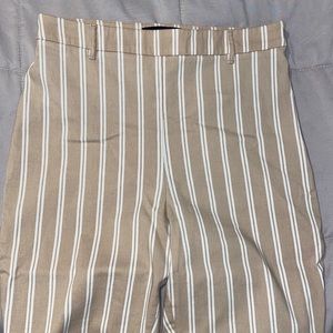 Tan and white striped legging type trousers