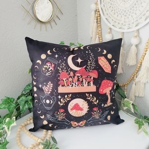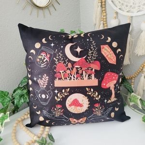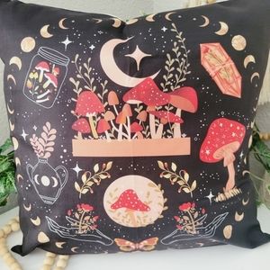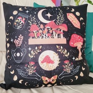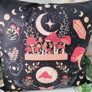1 Cushon Cover without filler pillowcase Mushrooms moon & stones magical Pattern, Beautiful print. 100% polyester. Mystical pillowcase.