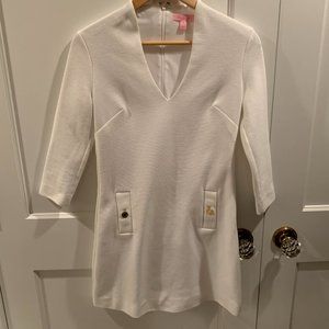 Lilly Pulitzer White Long Sleeve Charlena V-Neck Knit Shift Dress, Size XS