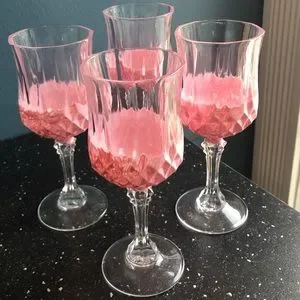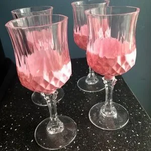 Set of 4 wine glasses hand painted pink. These are 6.5 high 2.5 wide. Can be separated.