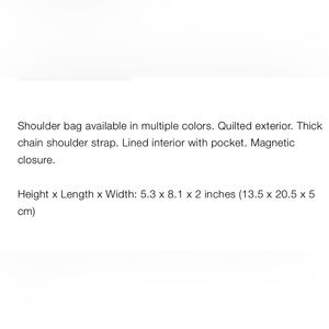 NWT Zara Quilted Chain Strap Shoulder Bag