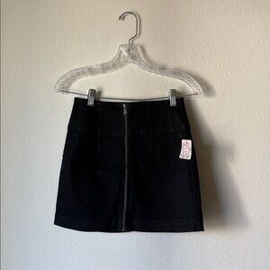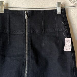 Punctuated with a zip front, this daring denim skirt will pair with everything from fitted tanks to billowing tops. The cotton blend fabric with a hint of stretch ensures you'll be able to strut your stuff comfortably.