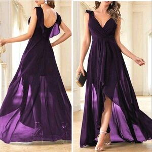 NEW Chic Gathered Plunge Ribbed Knit Sweater Dress Purple