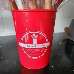 Nwt Silicone kitchen utensil set in red with wooden handles