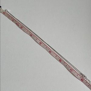 Adjustable 16-18”. Hallmarked 925. Appears to be rhodium plated to prevent tarnishing.