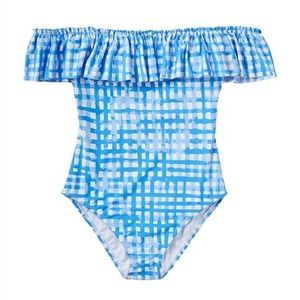 Off the shoulder + ruffles are always the best combination. Put these two fun details with print & you have your new favorite suit for the summer season. This feminine silhouette with ruffle has a shelf bra with removable cups & removable/adjustable straps.