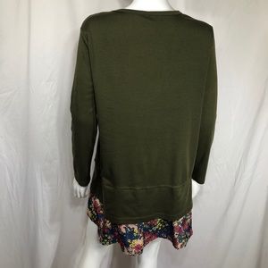 Olive Green Floral Trimmed Jersey Knit Legging Tunic