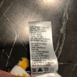 Originally a 3 pc. pj with socks but I no longer have the top/shirt and lost the socks.Size S (4-6). Soft and comfortable. Elastic waist band. 99% polyester 1% spandex Was bought worn several times but realized it was the wrong size. Comes from a smoke free home.