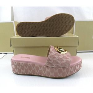 Michael Kors Sadler Platform Wedge Sandals MK Logo Fawn Light Pink