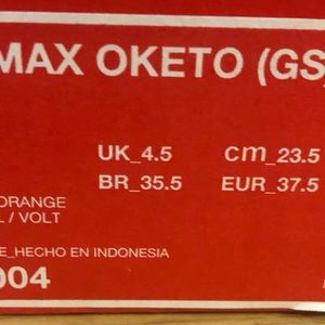 New Boys Nike Air Max Oketo 5Y (GS). They are Black/Volt -Total Orange