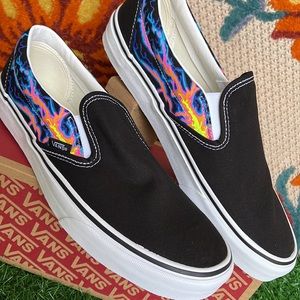 New in the box authentic Vans Classic Slip On Electric Flame Black/True White Men’s sneakers