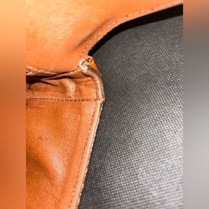 The bag is in fair condition, it has some marks on the inside of it , Pen-marks and a little watermark, the zipper on the inside of the bag with the leather is stuck together, but it also can be opened. The straps were just recently replaced by cobbler for $900