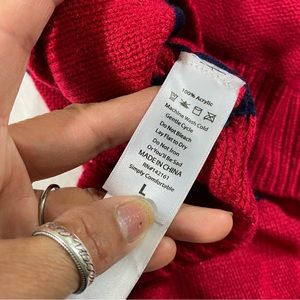 LulaRoe sweater Dress in Pink blue trim Long Sleeve Crew Neck Sweater Dress LG