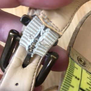 tan w/adjustable elastic around arch area and at buckle, for comfortable wear.