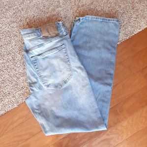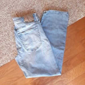 American Eagle Relaxed Straight Jeans size 30X32. Good used condition with no stains or holes and comes from my smoke free and pet free home. Some light puckering as seen in photos but is not noticeable when worn. Item washed per care label.