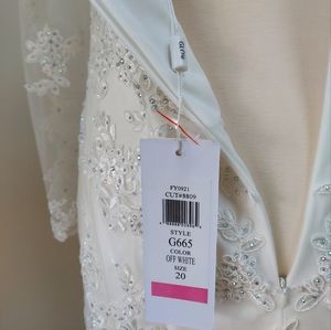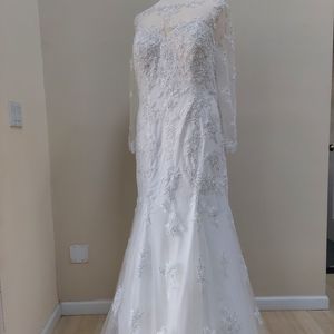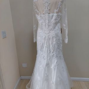 Glow new with tag wedding dress. Trumpet, mermaid, applique, lace, and mesh. four layers of mesh on the skirt. Will fit size 16- 18 best. Can be worn as a Prom dress or wedding. Customers can customize to fit your size.