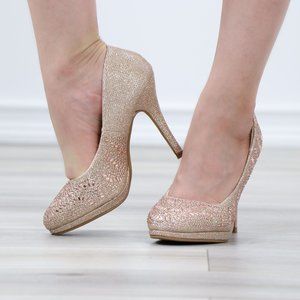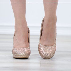 Sparkly Rose Gold Rhinestone Glitter Diamond Platform Slip On High Heel