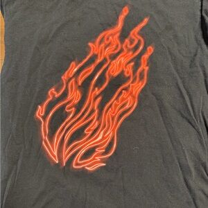 Navy blouse with pink flowers. Short sleeve with flutter sleeves. Buttons down the front with a tie at the waist. Great condition. Size small.